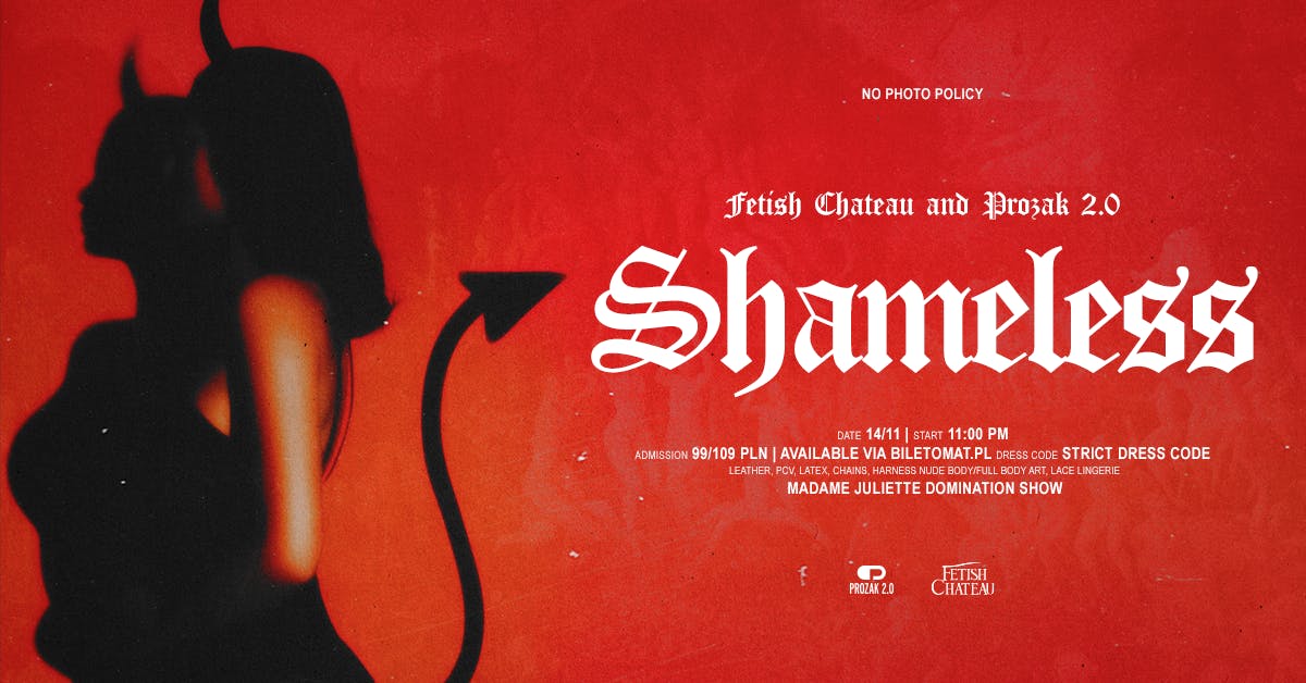 Powracamy z ostatnią w tym roku edycją 𝕾𝖍𝖆𝖒𝖊𝖑𝖊𝖘𝖘 w 2.0. Zamknięta, kultowa noc, na którą wejdziesz wyłącznie w klimacie 𝔣𝔢𝔱𝔦𝔰𝔥. Przeczytaj zasady wejścia lub zapytaj o nie w DM. Limit biletów: tylko 100 sztuk.
